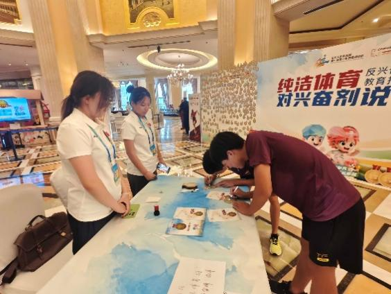 本届田径运动会8个运动员入住酒店,全部设立了反兴奋剂教育拓展站,创新采用虚拟现实技术,推出了反兴奋剂体感游戏,通过"纯洁体育签字墙"、知识答题等环节,使严肃的教育内容变得生动有趣;并设立了“纯洁体育日”鼓励运动员积极参加反兴奋剂教育活动,让反兴奋剂意识深入人心。“我们希望让‘拿干净金牌’的意识,像种子一样在年轻人心里扎根。”一位工作人员的话,道出了宣教工作的深意。从“为什么反兴奋剂”到“如何保护自己”,他们用通俗的语言化解专业壁垒,让“公平竞赛”的理念渗透到赛场的每一个角落。