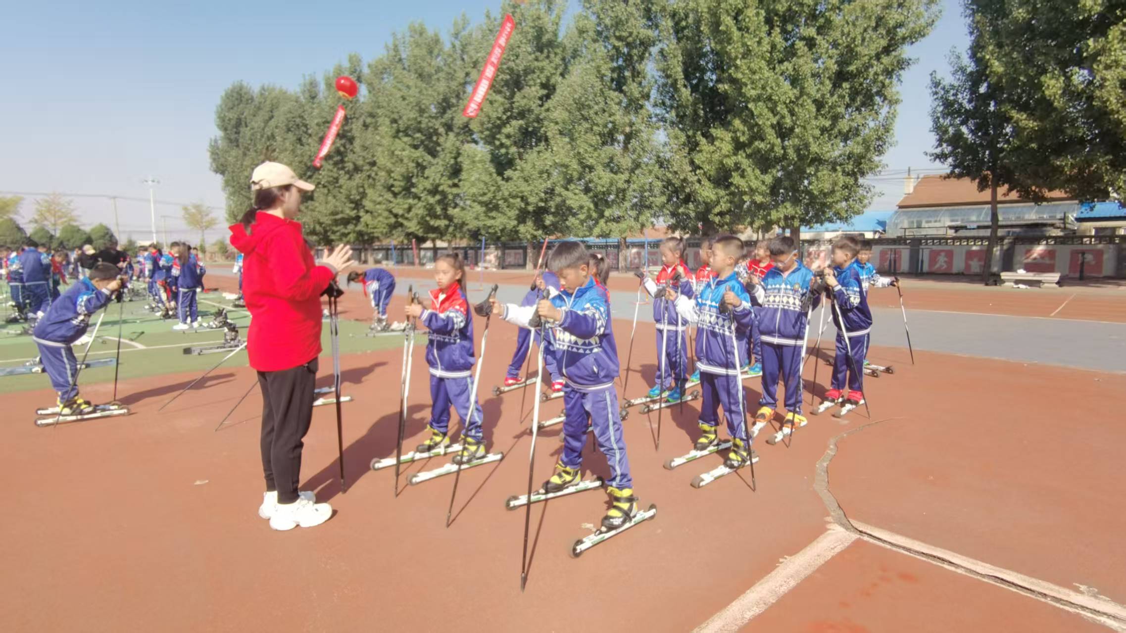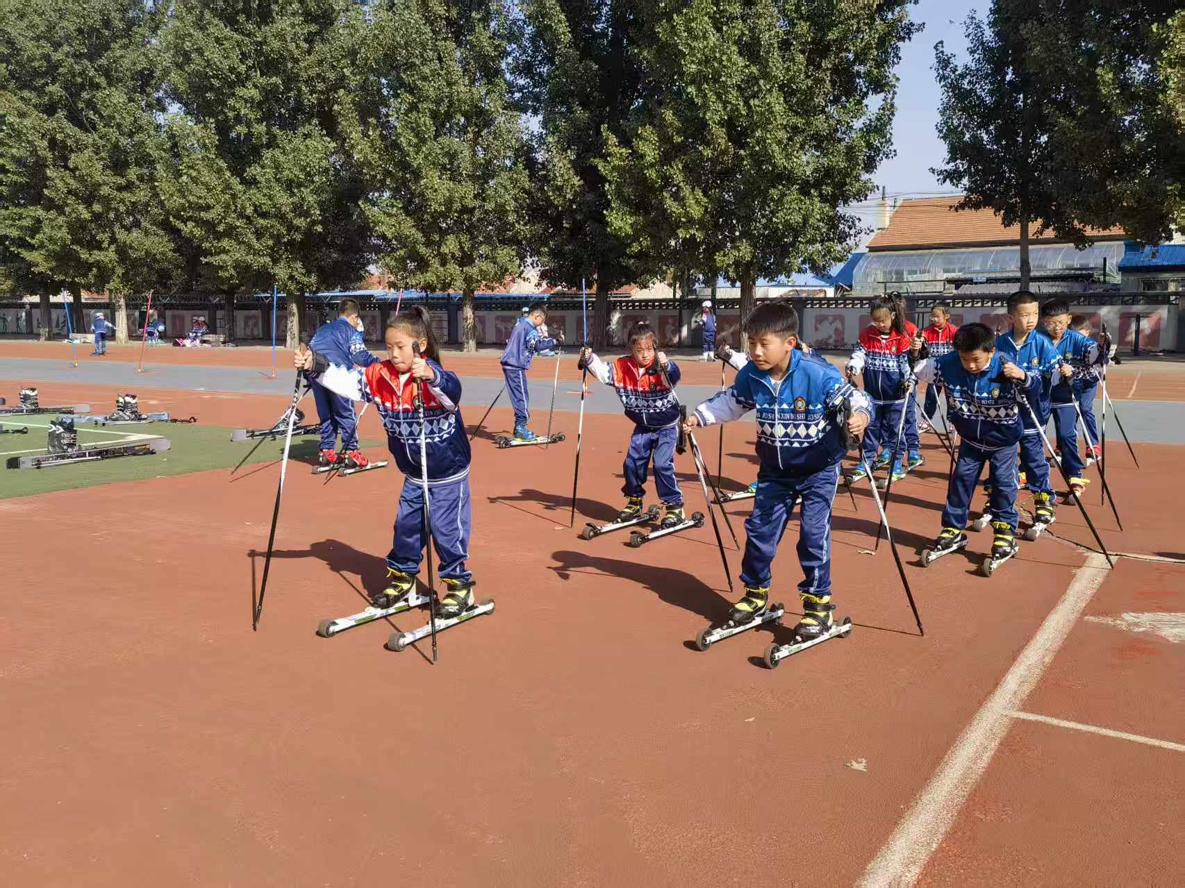 操场内,省冰雪运动协会提供了陆地冰壶、单板滑雪、高山滑雪、越野滑轮、滑冰模拟练习器、冬季两项等冰雪运动装备,配备冰雪运动专业教练员师资,分区、分批对参与活动的师生进行教学培训。让同学们尽情体验由冰雪运动带来的激情与快乐。