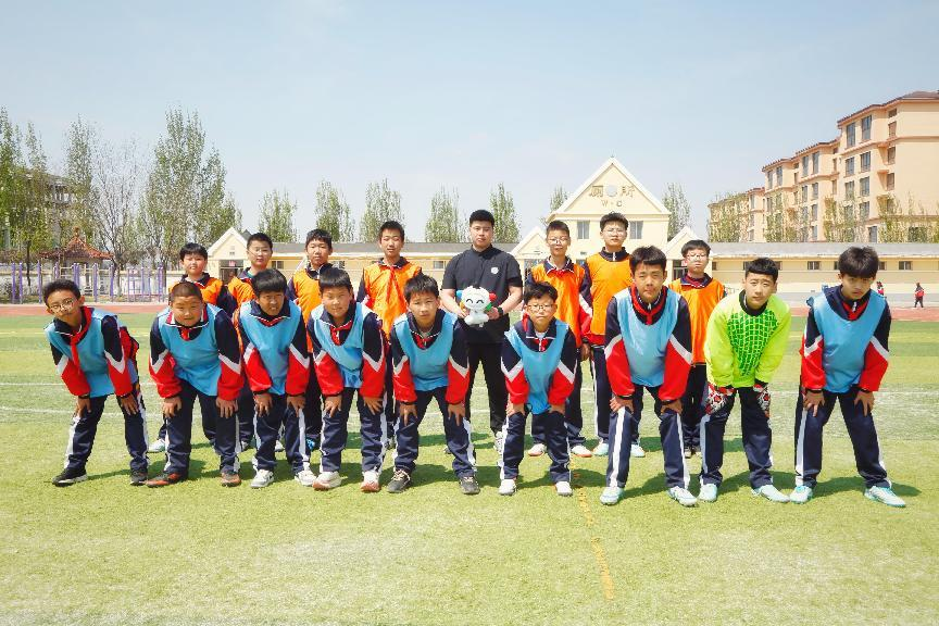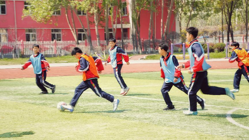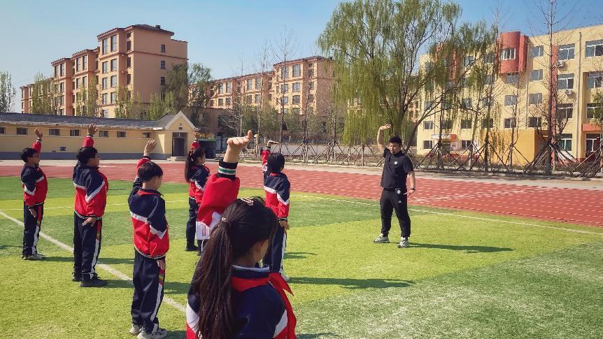 4月的一天,徐泽宇在操场上带领学生们进行足球特色课。作为“全国足球特色学校”“辽宁省体育传统项目学校”,太平学校连续12年被盘山县教育局评为“标兵单位”,足球是学校的传统体育项目。由于缺乏扩音设备,偌大的操场上,临场指挥的声音经常被远处的孩子们“忽略”。