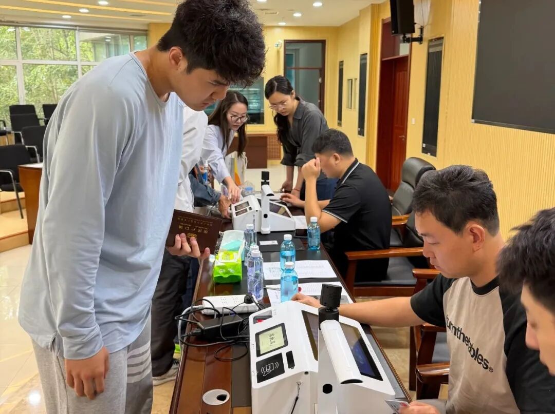 在服务现场,工作人员仅需3分钟即可完成运动员身份核对、指纹采集、数据加密上传全流程,全程严格遵循信息安全规范,确保数据零泄露。“以前要协调训练时间专门跑一趟,现在服务上门,训练间隙就能办完,特别省心。”篮球队教练表示,这一举措让团队能更专注于战术打磨与状态调整。