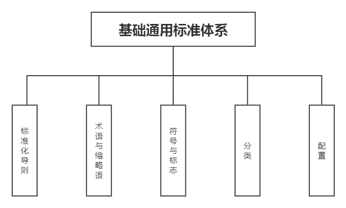 基础通用子体系包括标准化导则、术语与缩略语、符号与标志、分类和配置五个部分,如图3所示。基础通用标准主要针对基础的或共性的标准化对象。