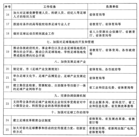(一)理顺足球管理体制。(一)充分发挥各类社会组织作用。(一)加强足球教练员和裁判员队伍建设。(一)构建多层次广覆盖的竞赛体系。(一)不断扩大足球运动的群众基础。(一)推进校园足球普及。(一)指导思想。