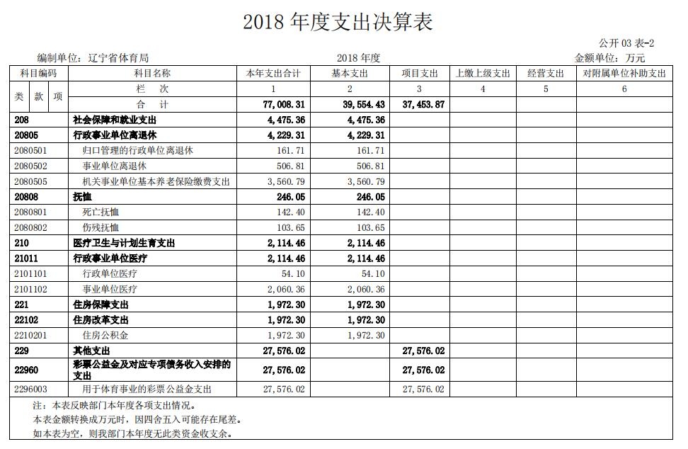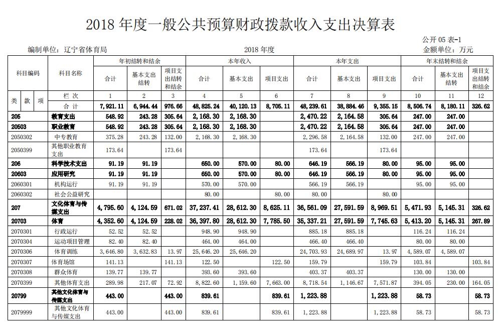 2018年度财政拨款支出75815.63万元,其中:基本支出38884.46元,项目支出36931.17万元。与上年相比,财政拨款支出增加1293.51万元,增长2%,主要原因:一是基本支出增加3603.43万元,主要为新增人员增加的工资、社会保险及公用经费提标等;二是项目支出减少2309.92万元,主要是2017年为全运会比赛年,相应备战及赛事经费较大,今年为调整年,项目支出减少。与年初预算相比,2018年财政拨款支出完成年初预算的103%,其中:基本支出完成年初预算的97%,项目完成年初预算的110%,这里既包括使用当年财政拨款发生的支出,也包括使用以前年度财政拨款结转和结余资金发生的支出。
