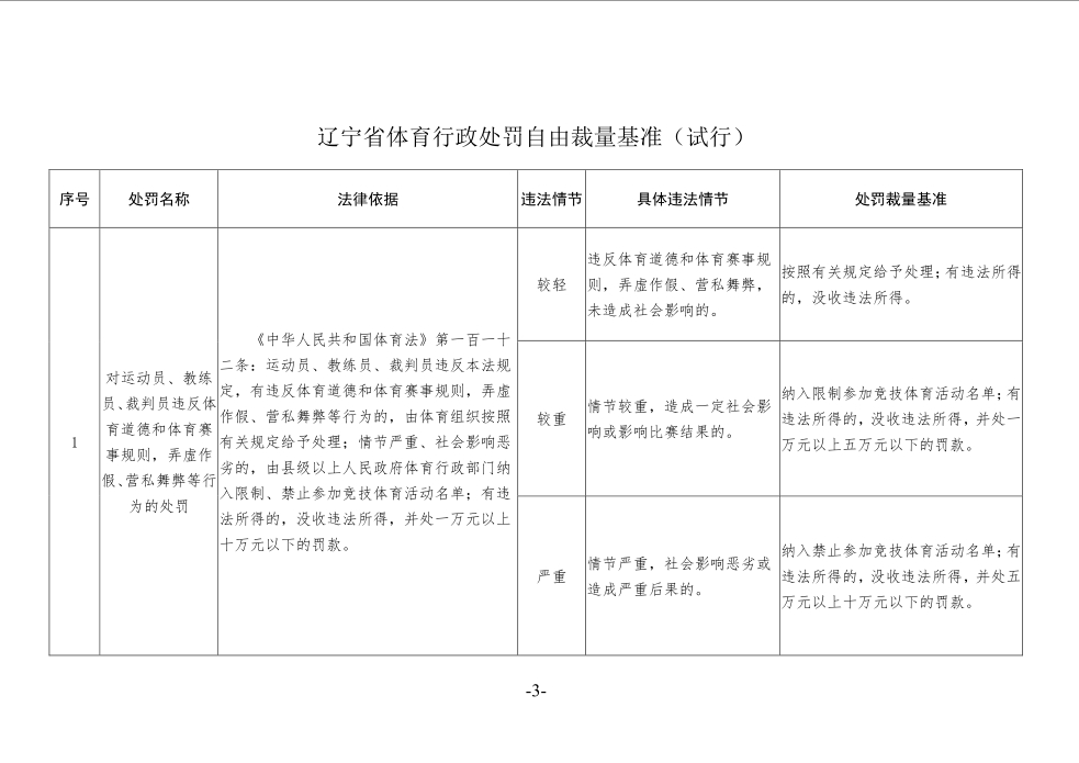 为贯彻落实国务院办公厅《关于进一步规范行政裁量权基准制定和管理工作的意见》(国办发〔2022〕27 号)精神和我省相关工作要求,建立完善我省体育领域行政处罚裁量权基准制度,规范行政裁量权行使,即时比分足球 制定了《辽宁省体育行政处罚自由裁量基准(试行)》。
